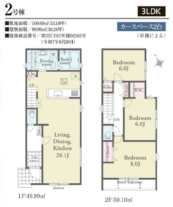 | 敷地全体面積 | 109.69m² | 延べ床面積 | 99.99m² |
